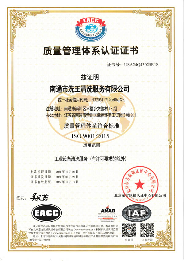 ISO 9001:2015质量管理体系证