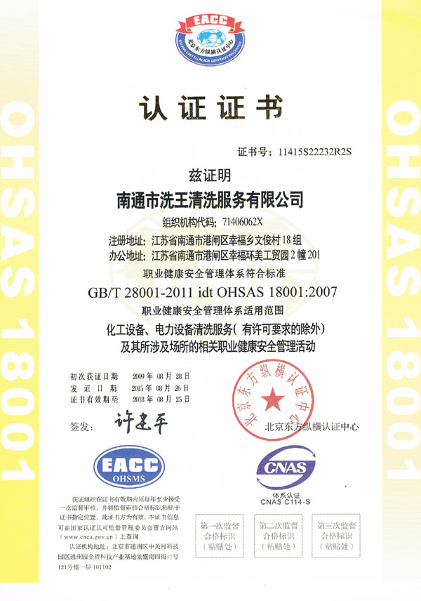 英文版职业健康认证