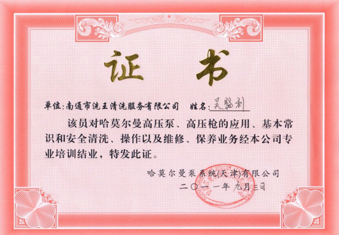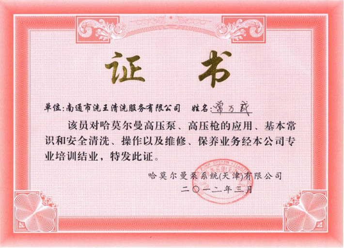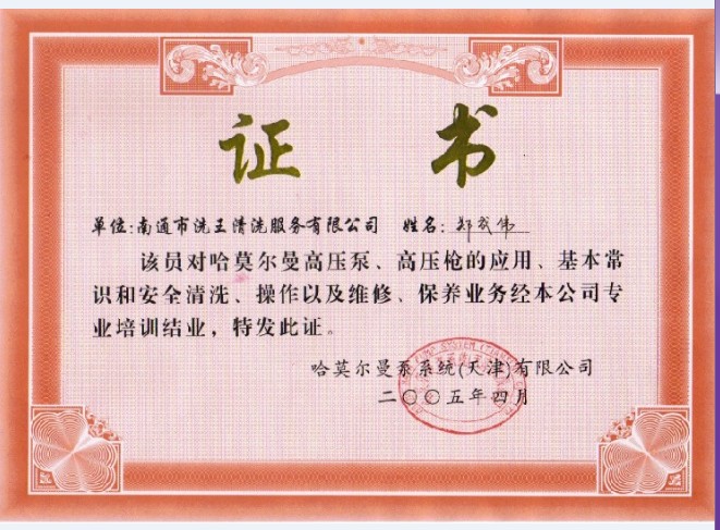 德国技术高压水枪操作证-郑成伟